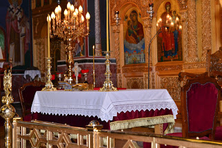 The first surprise, of course, is that the priest is facing the people, using an altar set up in front of the iconostasis. Here are some other photos of the liturgy: