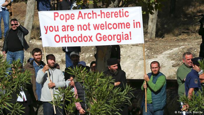 Friday, Pope Francis landed in Georgia to a surprisinglyย warm welcome from Patriarch Ilia of Georgia. Although this was the official line, there were scattered protests from laity and priests in the staunchly Orthodox country.
