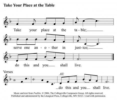 Today’s antiphon combines Luke 17:7 from the Gospel reading with Habbakuk 2:4 from the end of the 1st Reading, as a reminder that being fed (served) at the table of the Lord entails serving others, too, as well as acting with justice. The righteous will merit eternal life, a theme taken up in the psalm verses from Ps 112, which are given an additional mini-refrain emphasizing that eternal life comes to those who receive the Bread of Life.