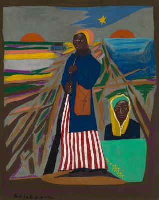 While a great series, it had me turn to Johnson’s more religious works, which I find particularly compelling. Like Powery, Johnson was inspired by African American spirituals and after the death of his wife from cancer, he increasingly created art with religious themes.[3] One of his more famous pieces, Ezekiel Saw the Wheel was inspired by the spiritual: