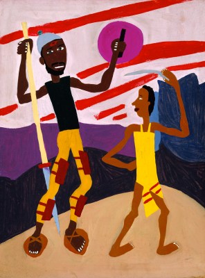 Other pieces, like Swing Low, Sweet Chariot, were also inspired by African American spirituals, namely “Swing low sweet chariot, comin’ for to carry me home…,” and his piece Climbing Jacob’s Ladder (see list below) by “We am clim’in’ Jacob’s ladder…”[5] Richard Powell notes that for his time these images were not well received in the African American community and congregations due to their risqué nature or the way the images pushed against traditional Christian imagery of the time.[6] I wonder if that would be the case today?