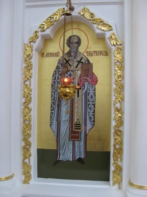 As a final word, consider the reality of the faith we are actually confessing on this feast of the Triumph of Orthodoxy. Whether alone or together with others, when we stand in front of an icon, it is not one-way communication. Yes, the saints on the icons are often written to look at Christ, showing us whom we are to worship. But praying before an icon is two-way communication, and a deep one at that. We are looking at the holy fathers and mothers who constitute one church of God’s people together with us. In looking at them and hearing the hymns the Church sings in their praise, we are invited into their true space, to learn about who they were on earth, and who they are now in heaven.